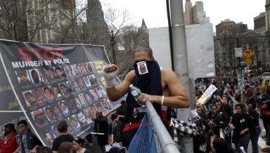 Marching across New York's Brooklyn Bridge, about 250 placard-bearing activists organised by the Stop Mass Incarceration Network protested against the latest incidents of violent police tactics used against minorities.