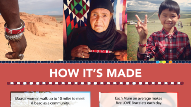 The LOVE Bracelet is made by Maasai mothers and buyers are encouraged to share pictures and messages about what love means to them using the hashtag #loveisproject.