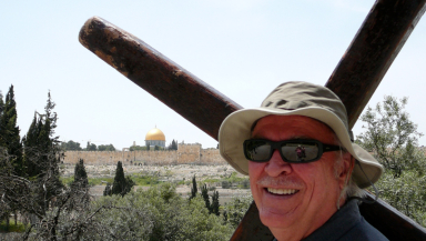 "He has shared the Gospel with politicians like George Bush, leaders like Yasser Arafat and musicians like Bob Dylan and Jannis Joplin. ... He has been hit by a car while carrying a cross, worn out countless shoes and seen an amazing number of people come to Christ (he stopped counting a long time ago)."