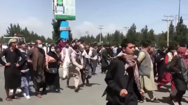 Chaos outside the airport at Kabul as desperate Afghans attempt to flee. (Photo: Sky News)