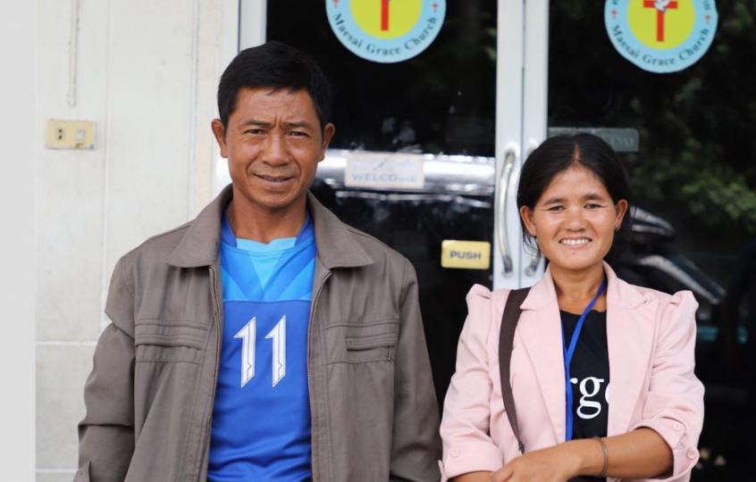 The parents of Adul, who was rescued from the cave in Thailand, standing outside the church where their son attends the Compassion programme. Compassion International
