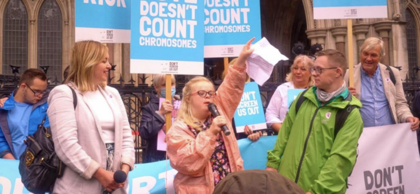 They are challenging the government over a disability clause in current abortion laws that means babies with Down's syndrome and other disabilities can be legally aborted up to birth instead of the usual 24 week limit.