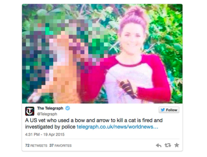 Dr. Kristen Lindsey, a vet in Texas, has been fired after posting a photo on Facebook showing herself with a dead cat, which had been shot through the head with an arrow.