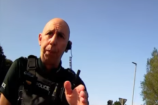 In footage of her arrest, an officer tells Mrs Brennan that she is "really stubborn and ignorant" for breaking the law by refusing to move on.