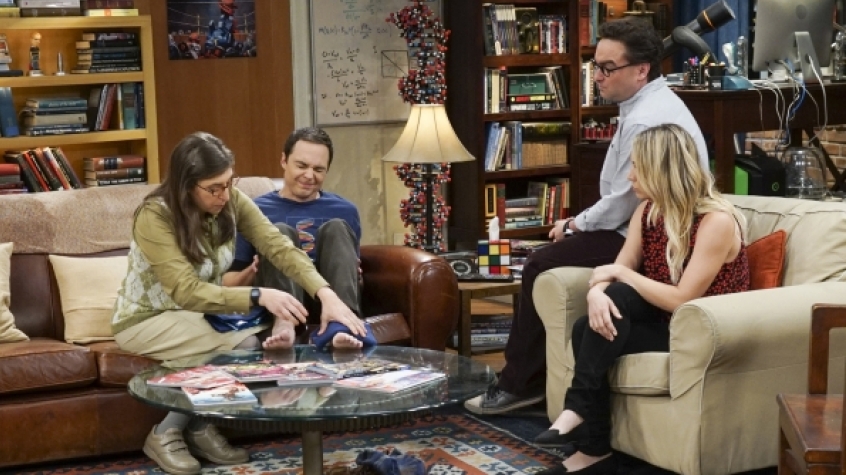 The group takes a closer look at the damage to Sheldon's foot in "The Big Bang Theory" season 10, episode 9. CBS