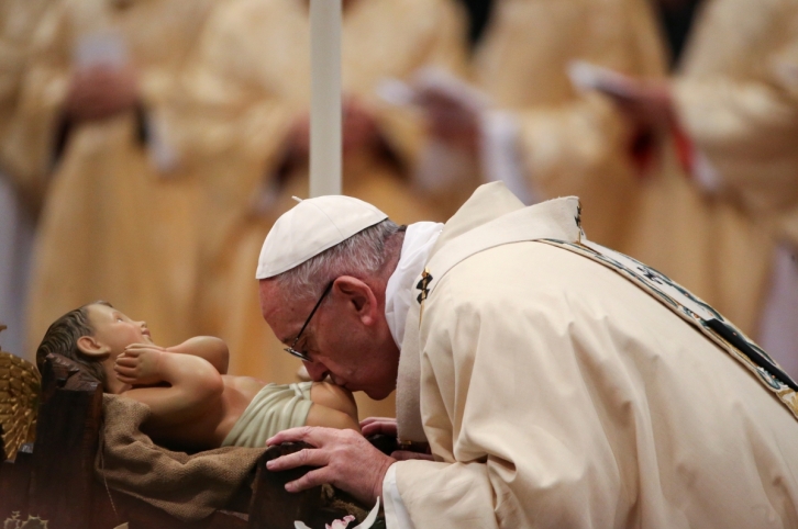 Today Pope Francis leads the Epiphany mass in Saint Peter's Basilica at the Vatican, and kisses the statue of baby Jesus.