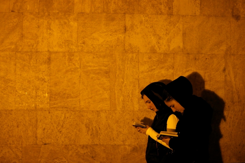 Christian worshippers read prayers books during an Orthodox Easter service at Sioni cathedral in Tbilisi, Georgia.