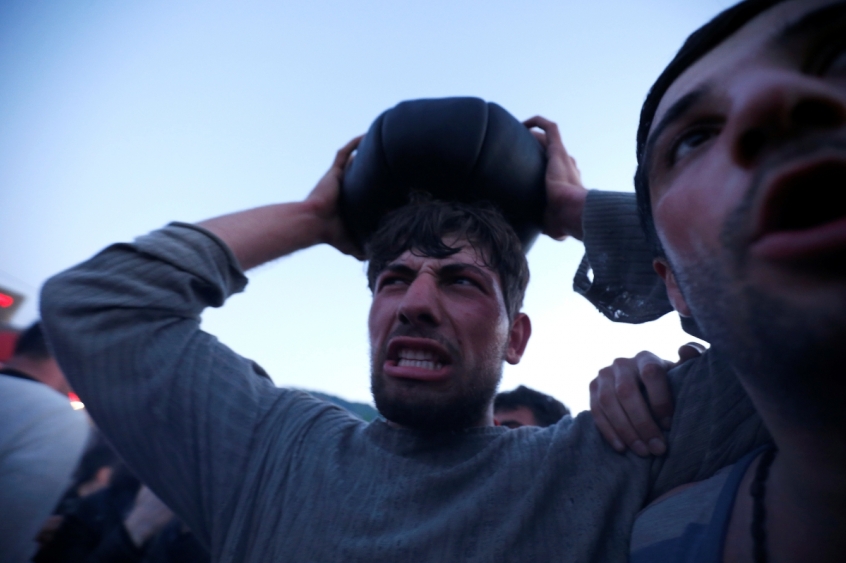 Winners celebrate after the annual Lelo match in the village of Shukhuti, Georgia. The villagers of Zemo (upper) Shukhuti and Kvemo (lower) Shukhuti have played the game every Easter Sunday for generations, with each side trying to carry the 16-kilogram ball to their end of the neighbouring villages.