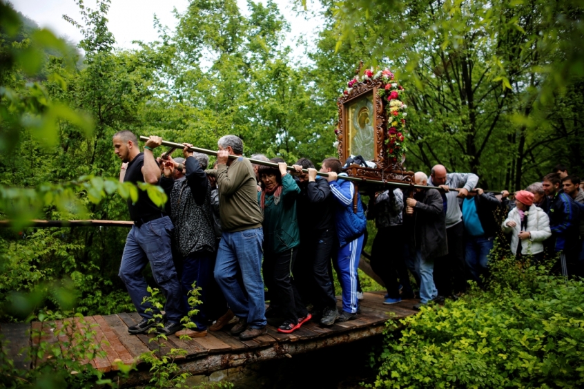 Orthodox Christian worshippers carry an icon of the Virgin Mary during a parade marking Easter near Bachkovo monastery, Bulgaria.