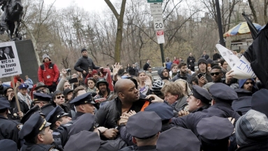 At least one person was seriously injured during the course of the protest, and 14,000 turned up to counter-protest.