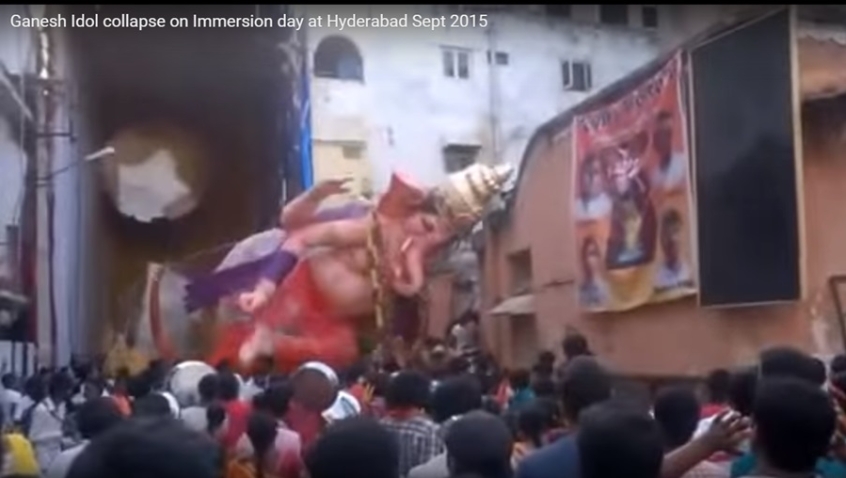 According to a report by The Hindu, the statue got entangled in electrical wires. When the festival organisers tried to untangle the wires, the statue crashed first into a building and then fell upon the worshippers in Hyderabad, India.