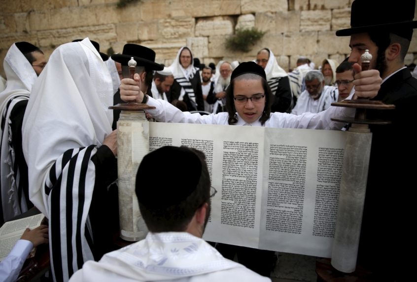 An Ultra-Orthodox Jewish boy holds a Torah scroll during a special priestly blessing for Passover at the Western Wall, Judaism's holiest prayer site in Jerusalem's Old City.