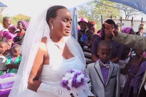 Saneie Masilela and Helen Shabangu, now nine and 62 years old, respectively, renewed their vows in front of other villagers last week in Kildare Village, Mpumalanga, South Africa.