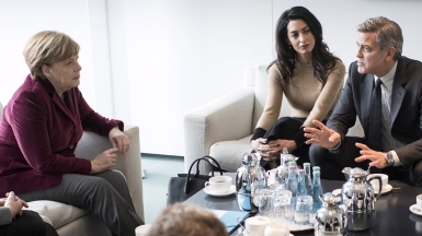 Clooney made the suggestion after a private meeting with German Chancellor Angela Merkel in Berlin to discuss the crisis in Syria, the European efforts to stem it, and what Hollywood could do to help. He was joined by his wife Amal, a human rights lawyer, and former British foreign secretary David Miliband, who now heads the International Rescue Committee (IRC), according to reports.