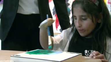 The Children of War Foundation brought her to the United States to receive free treatment at Shriners Hospital for Children Los Angeles and, weeks later, Shah Bibi began painting with her prosthesis. She told reporters that it was her favorite activity in Afghanistan.