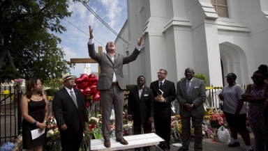 It's a rousing call, and one the people of Mother Emanuel demonstrated in the aftermath of their darkest hour. Their forgiveness allowed stunning shoots of resurrection to spring from tragedy. The Confederate flag is now being removed across the South. Just this week the Southern Baptist Convention voted to repudiate the flag – surely a direct result of the actions of Mother Emanuel. Their forgiveness rolls on like a mighty river. The church is now calling for people around the world to carry out 'acts of amazing grace' as a way of marking the anniversary.
