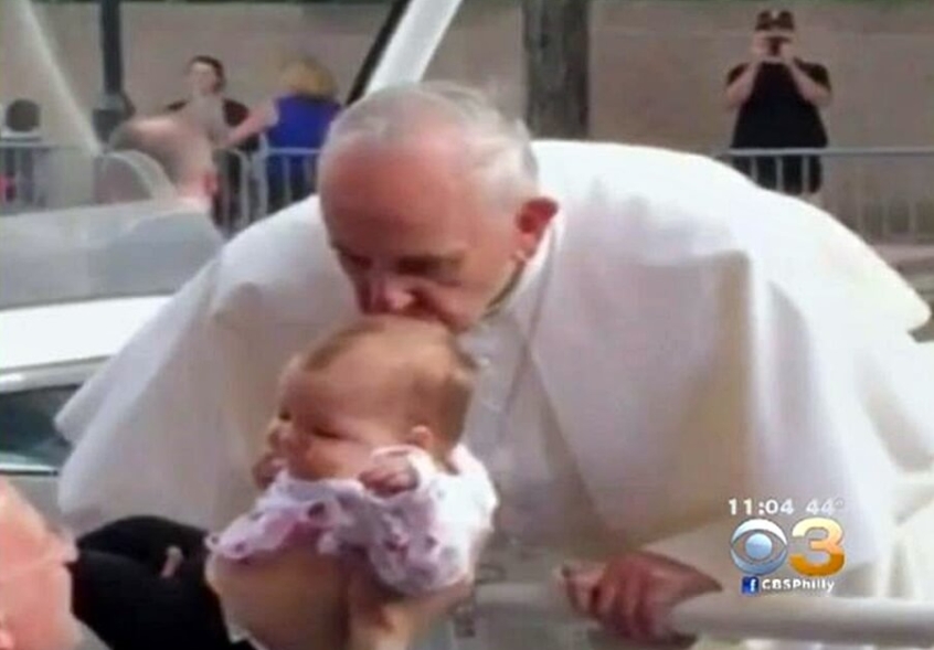 In September during his pastoral visit to the United States, the Pope kisses a one-year-old baby girl named Gianna after he asked the driver of the popemobile to stop during a motorcade in Philadelphia, CBS Phily reported.