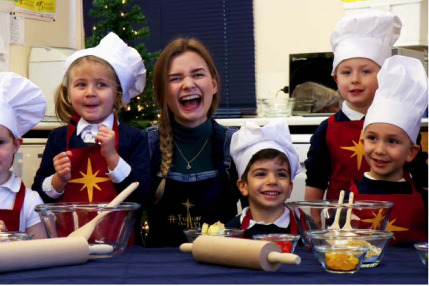 The food writer and blogger – the youngest ever contestant on The Great British Bake Off – was joined by a crack team of junior bakers at Hunsdon JMI School in Hertfordshire as she prepared a special star-themed recipe.