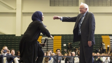 Remaz Abdelgader, the college senior who asked the question, was then invited on stage by Sanders and he gave her a hug in front of the crowd, Think Progress reported.