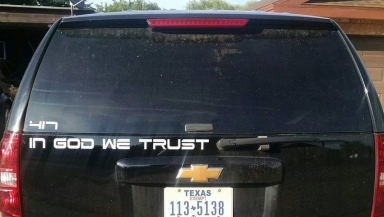 The Freedom From Religion Foundation (FFRF) challenged last year the police department in Childress, Texas for placing the "In God We Trust" decals on its vehicles, saying such decals have "no place on government-owned cars."