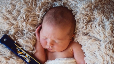 The next photo showed her son cradling a hockey stick and she captioned it: "The Predators are in the playoffs! Just waiting to get called up!"