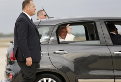 They were still on the ground when the Pope arrived at the Cathedral of St Matthew after his meeting with President Obama at the White House.