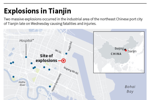 Anxious residents rushed to hospitals to seek news about injured loved ones. Dozens of police guarded the entrance of the TEDA hospital, a Reuters witness said.