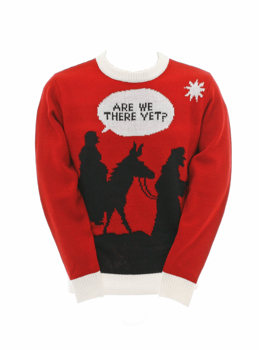 This jumper perfectly captures the waiting journey of advent, as Mary complains like a small child while on the back of the donkey. The red and white santa theme is a bonus, although not for Mary's haemorrhoids.