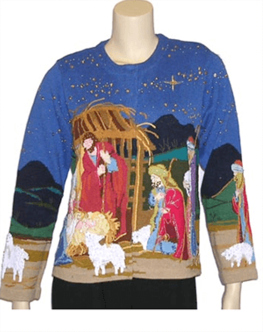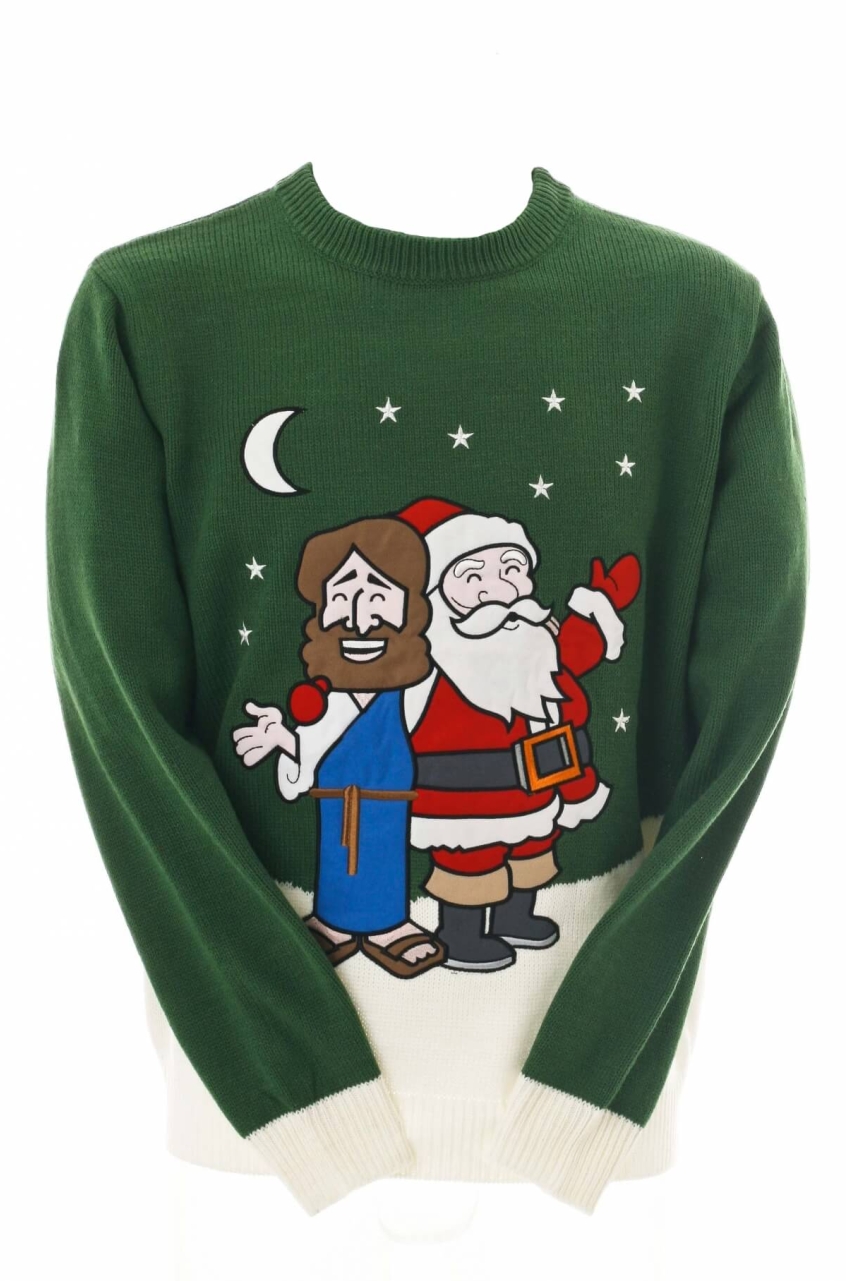 For the last few years, the traditional Christmas jumper has made an inexplicable resurgence. Like much of popular culture, its renewed popularity began in irony, but suddenly those gaudy designs, large pictures of reindeer and even flashing lights have become a staple of the modern Christmas. And in a further proving of my increasingly-compelling hypothesis that if something exists, someone has made a cheesy Christian version of it (let's call that Saunders' Law), there are now a growing number of Christian Christmas jumpers. They're perfect for the Christian, or indeed the ironically-minded atheist, in your life, and here are just a few of the best.