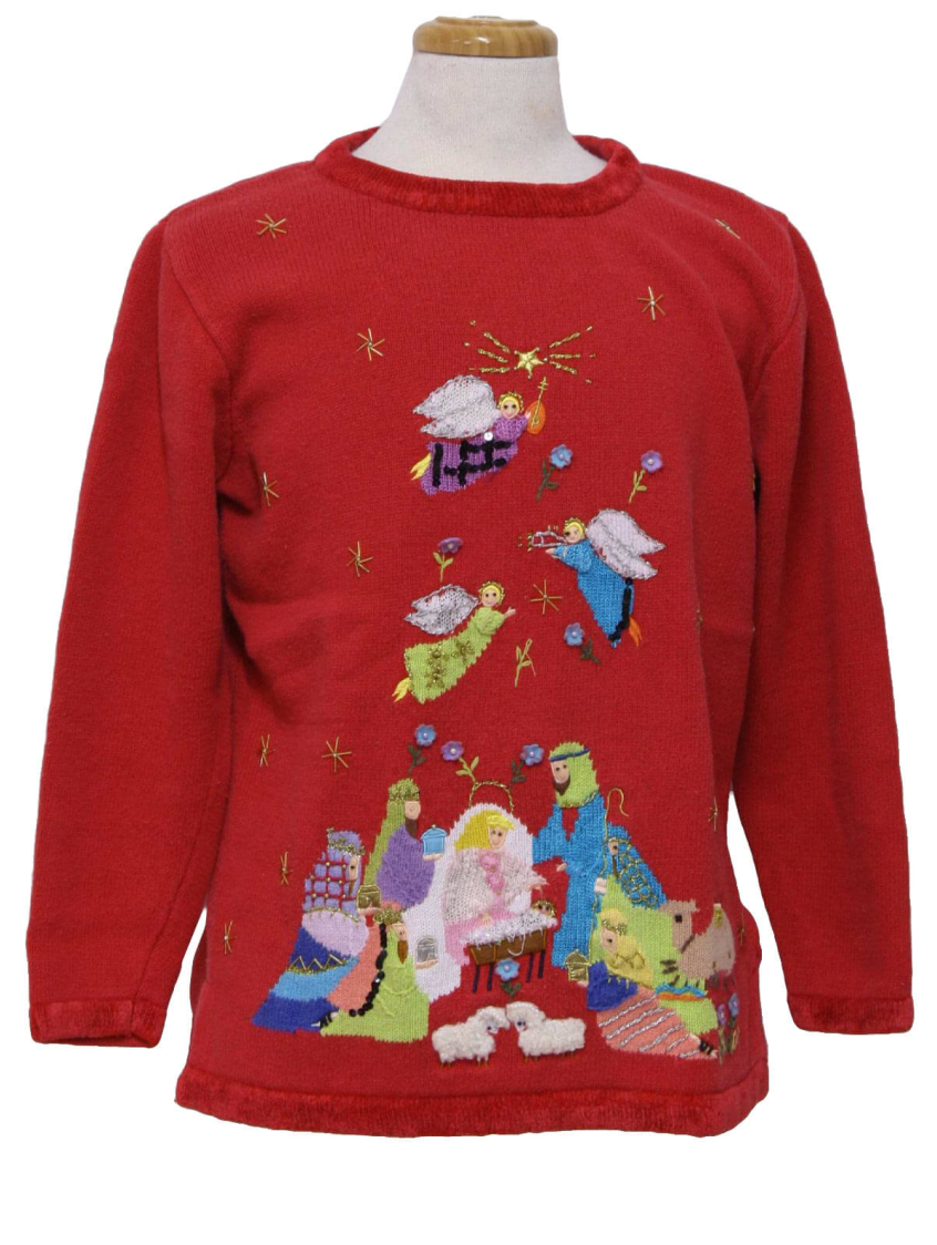 If you really want to go to town on the dodgy Christmas jumper front, this could be for you. This beautifully-constructed piece of nativity artwork is enough to send anyone who meets the wearer reaching for the Christmas carol sheet. With no expense spared, the detail even includes extra sheep on the sleeves. However, not all nativity-themed jumpers are quite as pretty...
