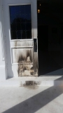 At the site of the fire on Tuesday was a poster with slogans against the Catholic bishop of Villarrica, Javier Stegmeier, accusing him of being complcit in the "state repression" against Mapuche people.