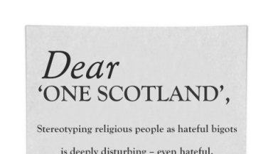 Christian Concern has created three alternative posters defending freedom of speech and telling One Scotland that 'stereotyping religious people as hateful bigots is deeply disturbing - even hateful'.