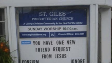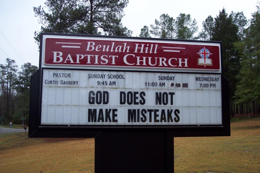 The Internet loves these – the church signs which prove you should always read everything you write back at least once. Other favourites include 'Want to know what hell is like? Come hear our pastor preach', and 'Adult movie night: Passion of the Christ'.