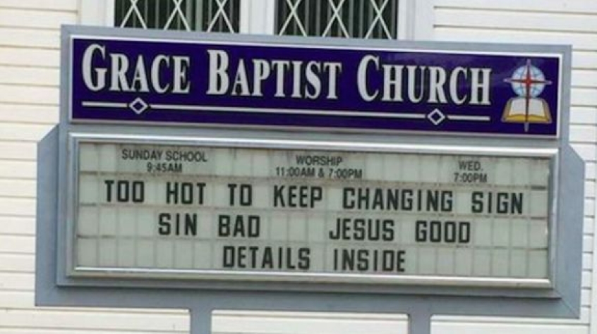 It must be exhausting having to continually come up with new phrases to fit on the sign, especially where you live in a place where it's 100 degrees outside. Sometimes you just have to fall back on honesty and simplicity, as this sign demonstrates.