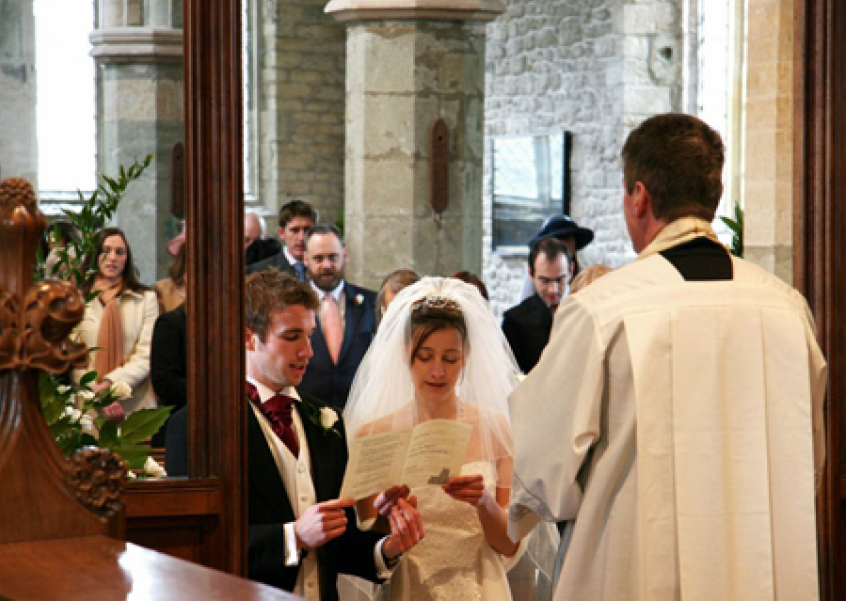 There is no great difference in the different wedding liturgies between Anglicans, Catholics, Baptists and Methodists but marriage law in the UK is designed around a buildings-based system meaning ceremonies must take place either in a register office, approved premises or in an officially registered place of religious worship. If in a Church of England building, the wedding must be carried out 'according to the rites of the Church of England', according to the 1949 Marriages Act.