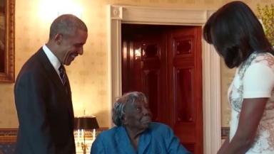 A video released by the White House went viral last night as it showed Virginia McLaurin dancing with joy at meeting Barack and Michelle Obama. The centenarian squealed with happiness, not only at being introduced to the leader of her country, but also at the significance of meeting America's first black President.