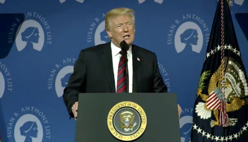 Trump concluded by stating that when people "stand for life," they "stand for the true source of America's greatness."