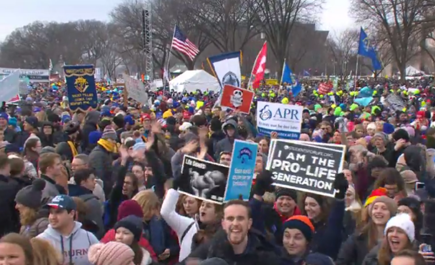 'We know in our heart of hearts that life is winning in America once again,' he said, drawing cheers from the crowd.