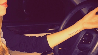 She captions it: "I fully understand tattoos are not for everyone. Allow me to explain... for every summer camp I went to throughout my life I wrote down the word anxiety for my biggest struggle. Fear began to consume me. This year I made a turnaround when I went to my Lord and Savior who has conquered all fears."