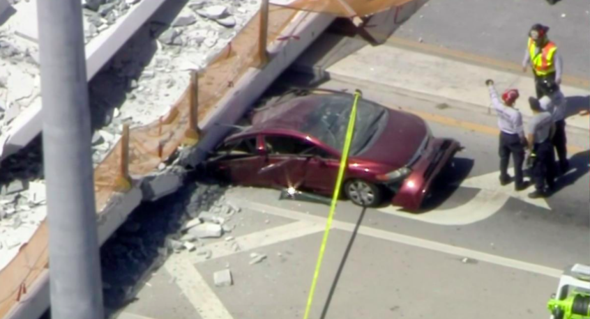US president Donald Trump offered prayers after a newly-installed pedestrian bridge in Florida collapsed on Thursday, killing four people and leaving several others critically injured.