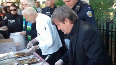 Asked by TheBlaze website whether they have plans to stop their feeding programme, Sims said "No", noting that his faith was at the heart of his good works. Abbott planned to distribute food yesterday near a local beach.