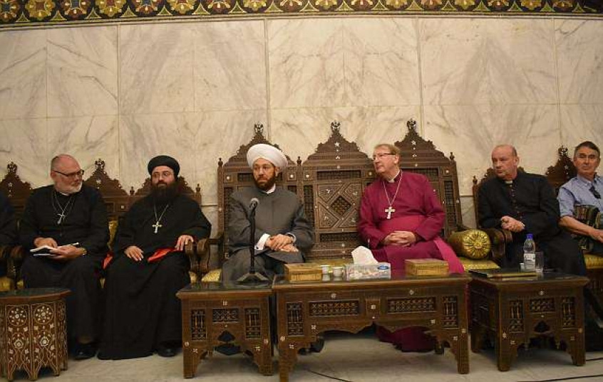 Fraser wrote: ''With the Grand Mufti of Syria – the top Muslim cleric in Syria – in the astonishing Umayyad Mosque in central Damascus talking about how love is stronger than missiles. Very warm greeting despite the bombings.'