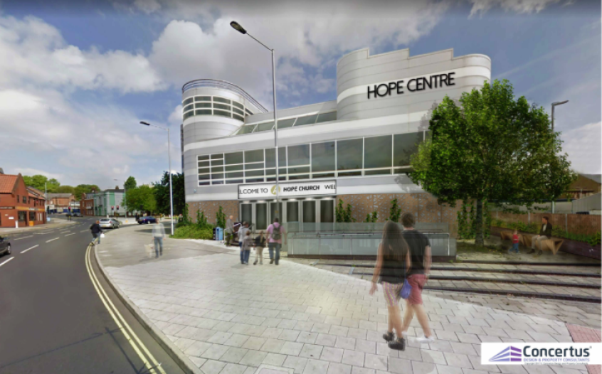 And as well as creating a facility to host its growing congregation with a large auditorium and rooms for children's work, Hope Church plans to create a community facility that will serve the town well all through the week.