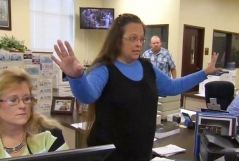 Davis, 49, has refused to issue marriage licences to same-sex couples in Rowan County, saying same-sex marriage is against her religious beliefs.