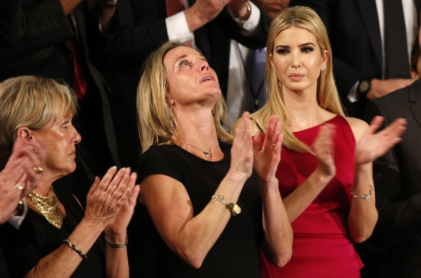 During his Congress speech, President Trump paid tribute to Ryan Owens, who was killed during a U.S. commando raid on an al-Qaeda stronghold in Yemen on Jan. 29—the first U.S. combat mission authorised by Trump.