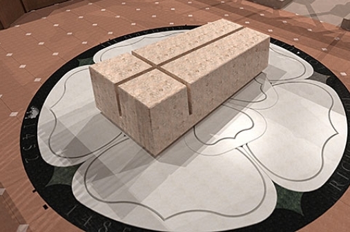 The raised tomb is to be positioned at the centre of a rose carved in white limestone, surrounded by a band of dark Kilkenny limestone.