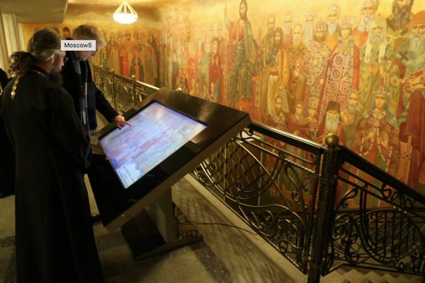 Tradition meets high-tech in the lobby of the seminary, where the panoramic fresco 'Christ and his disciples' is accompanied with a touchscreen device enabling viewers to click on a particular figure to learn more. Among the disciples, saints and martyrs, one can spot several Russian Orthodox authorities as well as famous Russian writers like Dostoyevski or Gogol. 'They were disciples too', says the seminary guide.