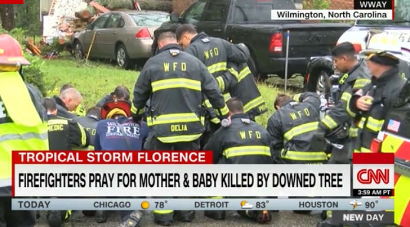 It is reported that at least five people are dead, including a baby. Heart-wrenching footage showed firefighters kneeling in prayer outside the home where a mother and her infant died after a tree fell on the house on Friday.