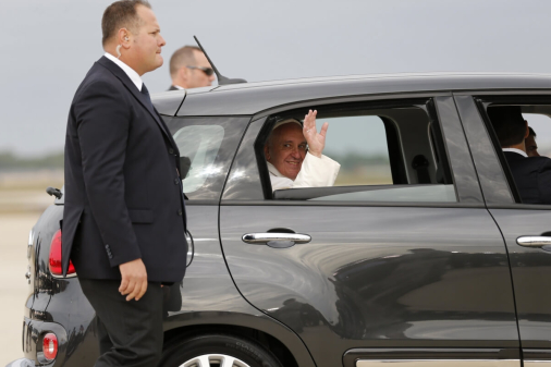 The Pope endeared himself to millions when on arrival at Andrews Air Force Base in Washington he opted for a tiny charcoal grey Fiat 500 instead of the traditonal limousine such as the $1 million armoured car known as "The Beast" used by President Barack Obama. During the six-day visit to the US, which straddles the three cities of Washington, New York and Philadelphia, he will use a Jeep Wrangler popemobile. Both cars are manufactured by the Italian-American company Fiat Chrysler.