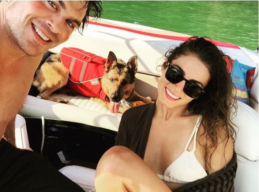 On Sunday Aug. 9, the "Vampire Diaries" actor took to the photo sharing app to upload a photo of him with his wife and their dog Ira as they relaxed on a boat. He captioned it, "Lake time with part of my little family…Smiling is truly one of the keys to life I'm convinced. Hope you smile today—it's good to do."